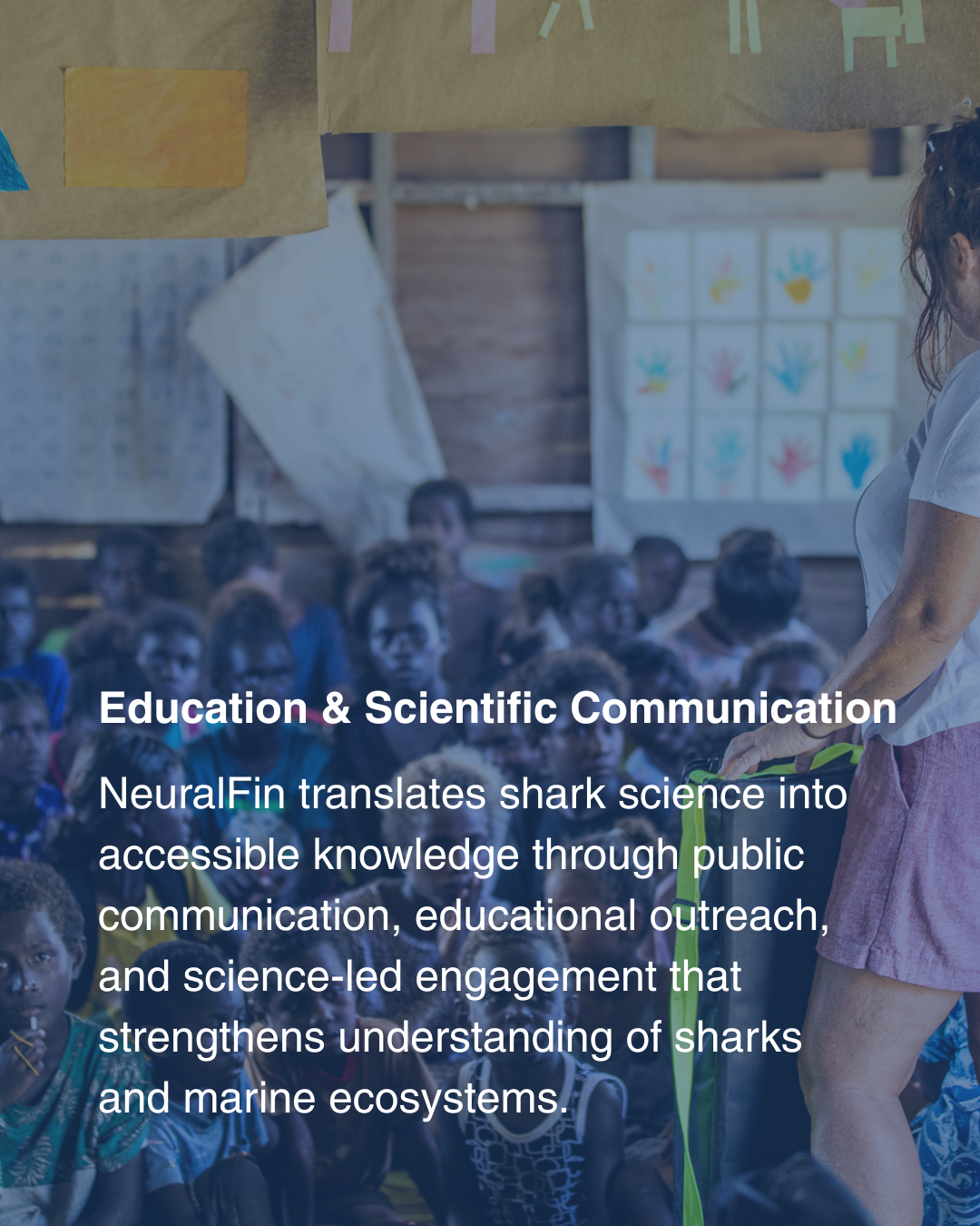 NeuralFin’s education and scientific communication work is directed toward strengthening public understanding of sharks, marine ecosystems, and the scientific processes used to study them. This function is not treated as separate from research, but as part of the broader responsibility of translating complex scientific knowledge into forms that are accessible, credible, and useful across public, educational, and conservation contexts. By communicating shark science through structured educational content, public-facing interpretation, and evidence-based outreach, NeuralFin extends the value of its research beyond data generation alone, helping build scientific literacy, improve understanding of shark ecology and monitoring, and support more informed engagement with marine conservation