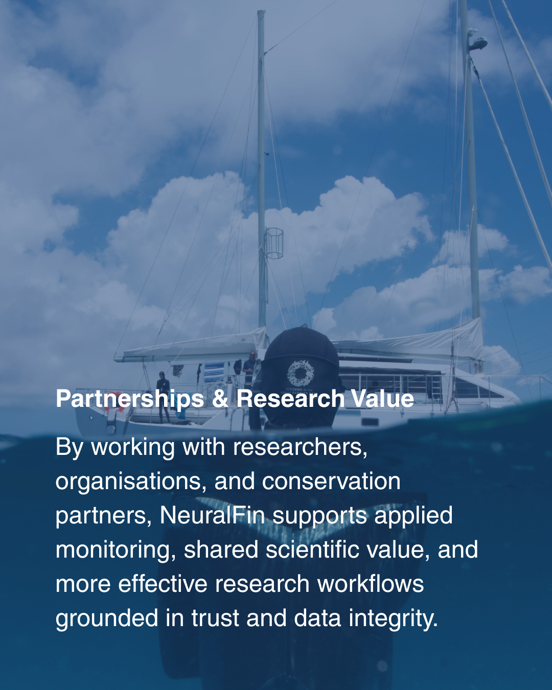 NeuralFin’s partnership and applied research work is directed toward extending the scientific value of its monitoring, identification, and catalogue capabilities through collaboration with researchers, institutions, conservation organisations, and other mission-aligned stakeholders. The purpose of these partnerships is not simply to provide technical access, but to support more rigorous research workflows, stronger monitoring continuity, and better-informed scientific and conservation outcomes within clearly defined project contexts. In this setting, value is created through the combination of biometric identification, structured record systems, and governed scientific use, allowing NeuralFin’s capabilities to contribute to applied shark research while respecting the confidentiality, operational boundaries, and data governance expectations that serious institutional partnerships require.
